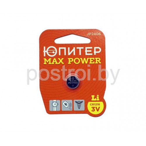 Батарейка CR1216 3V lithium 1шт. ЮПИТЕР MAX POWER