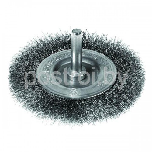 Щетка дисковая из витой стальной проволоки со стержнем для легкой и средней степеней зачистки. Предназначена для использования с дрелью.