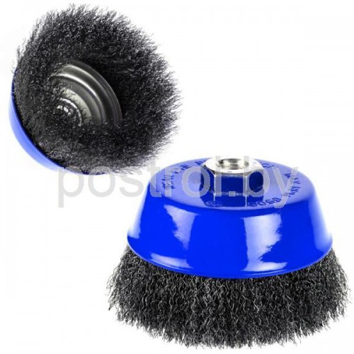 Щетка крацовка с чашкой из витой стальной проволоки с гайкой М14 для легкой и средней степеней зачистки. Предназначена для использования с углошлифовальными станками ("болгаркой").