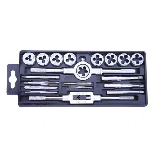 Комплектация: Плашки 9 шт.: M3х0,5; M4х0,7; M5х0,8; M6х1,0; M7х1,0; M8х1,25; M9х1,25; M10х1,5; M12х1,75; Метчики 9 шт.: M3х0,5; M4х0,7; M5х0,8; M6х1,0; M7х1,0; M8х1,25; M9х1,25; M10х1,5; M12х1,75; Метчикодержатель - 1 шт.; Плашкодержатель - 1 шт.