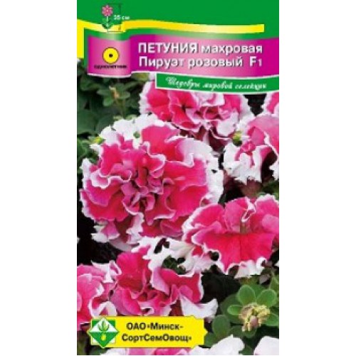 Однолетнее продолжительно и ярко цветущее растение высотой около 35 см. Цветки густомахровые, двухцветные, в диаметре 10-12 см. Необычная белая окантовка розовых цветков и сильная гофрировка лепестков делают эти петунии непревзойденными для оформления балконов, лоджий, клумб. Посев на рассаду производят в конце марта - начале апреля. Семена не присыпают, а слегка вдавливают в рыхлую влажную почву, посадочную ёмкость накрывают стеклом или плёнкой. Рассаду высаживают с середины мая.