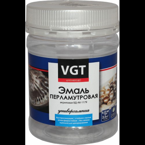 Производитель VGT, Россия Эмаль ВД-АК-1179 перламутровая серебристо-белая 0.23кг